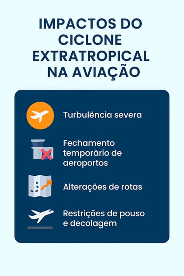 Os efeitos dos ciclones extratropicais sobre aeroportos são múltiplos e podem comprometer seriamente a segurança e a regularidade das operações: