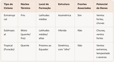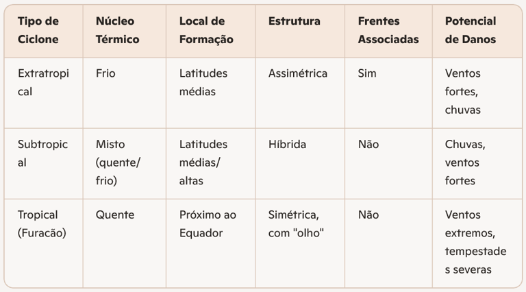 Compreender as diferenças entre os tipos de ciclones é fundamental para interpretar corretamente os alertas meteorológicos e os riscos associados a cada fenômeno.