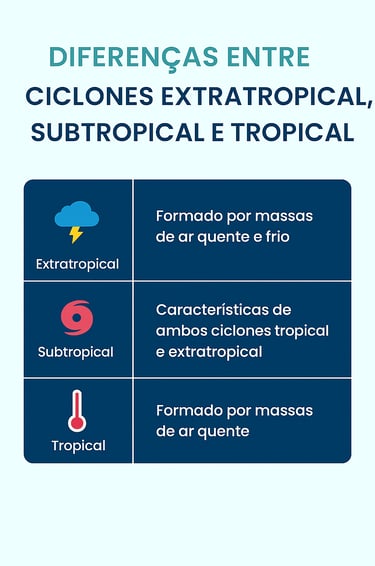 Diferenças Entre Ciclone Extratropical, Subtropical e Tropical