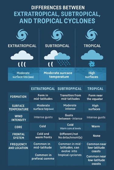 Differences Between Extratropical, Subtropical, and Tropical Cyclones